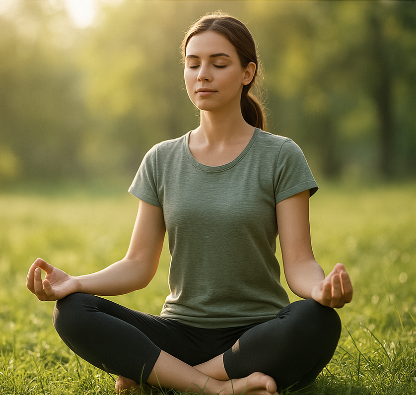 Image suggestion: A serene photo of someone meditating outdoors, preferably with soft natural light. You can insert it using the Image block and align it full-width for impact.